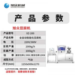 XZ-300型氣動壓榨豆腐機(jī),智能豆腐豆?jié){機(jī),雙桶煮漿高效生產(chǎn)現(xiàn)磨現(xiàn)煮,漿渣分離快速出漿。機(jī)器運(yùn)行穩(wěn)定不銹鋼材質(zhì)打造,堅(jiān)固耐用,安全衛(wèi)生,時尚大方,易于清洗。