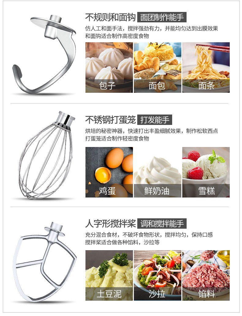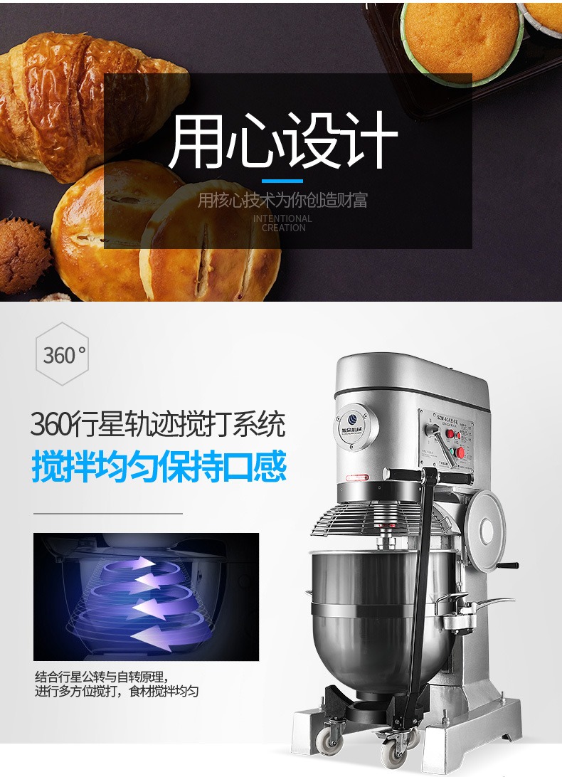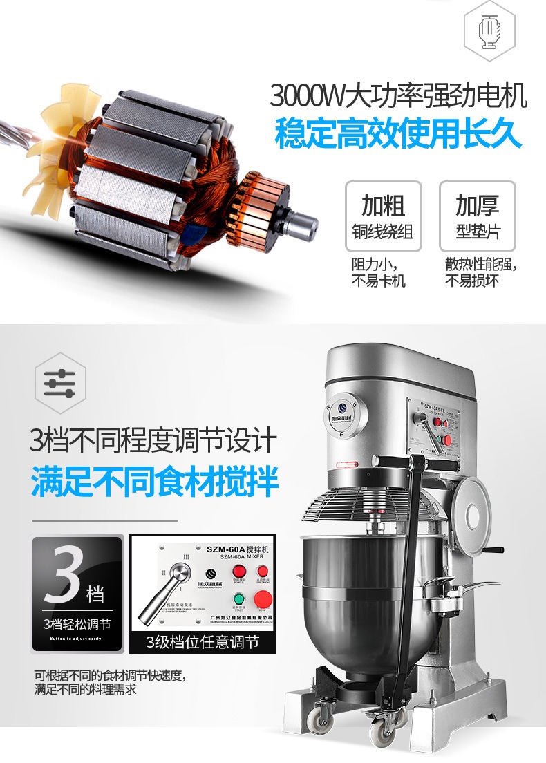 多功能攪拌和面機,創(chuàng)業(yè)神器,開創(chuàng)廚房新時代。多功能高效率,讓您省心省力又省事。360行星軌跡攪打系統(tǒng),攪拌均勻保持口感。3000W大功率強勁電機,穩(wěn)定高效使用長久。
