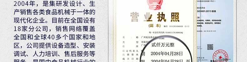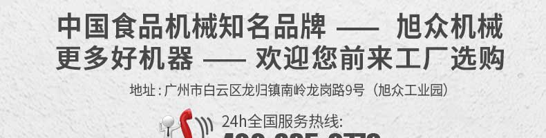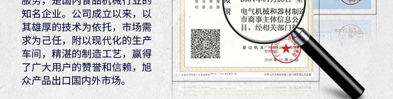 廣州旭眾食品機(jī)械有限公司是一家集科研開發(fā),生產(chǎn)設(shè)計(jì),營銷服務(wù)為一體的現(xiàn)代化生產(chǎn)企業(yè)?,F(xiàn)代化生產(chǎn)車間,精湛制造技術(shù),所產(chǎn)機(jī)械歷經(jīng)市場重重考驗(yàn),不斷贏得海內(nèi)外客戶的贊譽(yù)。