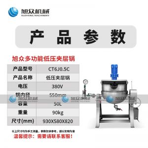 作者:旭眾機械發(fā)布時間:2019-05-15 17:02查看數(shù):您當前的位置:首頁>>產品展示>>油炸機和榨油機系列>>夾層鍋煮鍋