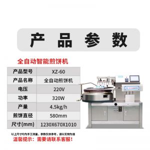 名稱XZ-60全自動煎餅機 電源220v 功率320w 產量4.5kg/h 尺寸1230*670*1010mm 重量 規(guī)格 其他