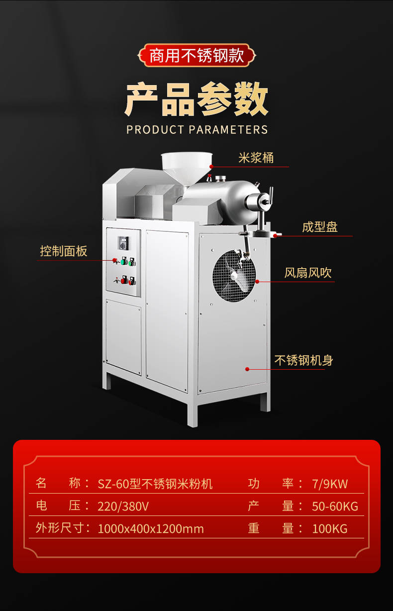 SZ-60不銹鋼米粉機(jī),可生產(chǎn)米粉、米線、桂林米粉、過橋米線、年糕、糍粑等產(chǎn)品。各種形狀都可生產(chǎn)(圓、扁),加工食品外表光滑,厚薄、寬窄、粗細(xì)均勻可調(diào),筋軟適度,有彈性,口感柔軟、味道純正。