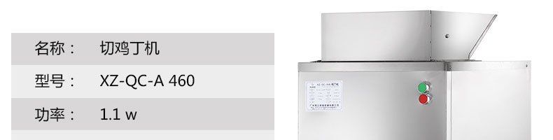 XZ-QC-A460切丁機,切雞丁機適合將帶軟骨的禽類,如雞、鴨、鵝、鴿、魚類等切成塊(?。?。本系列設(shè)備工作效率高,采用不銹鋼制作,美觀耐用,切割快速,少碎骨。