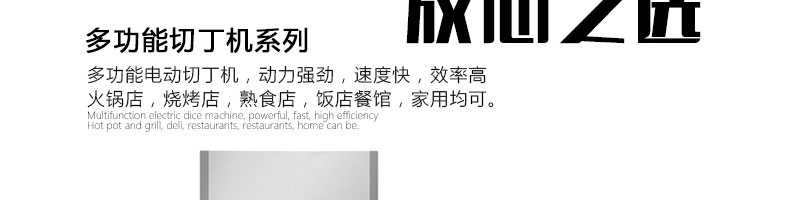 名稱XZ-QC-A460切丁機 電源220/380V 功率1.1kw 產(chǎn)量800kg/h 尺寸590*460*910mm 重量80kg 規(guī)格 其他