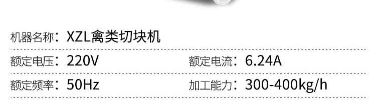 名稱XZL禽類切塊機(jī) 電源220V 功率1100W 產(chǎn)量300-400kg/H 尺寸 重量80kg 規(guī)格 其他