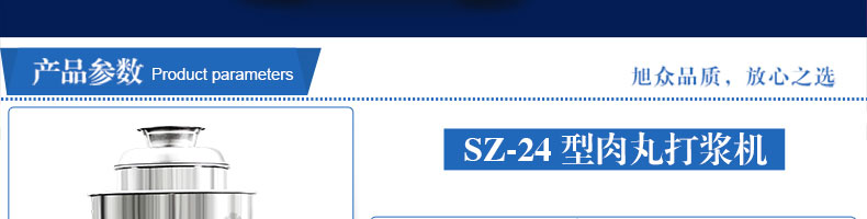 SZ-24型高速肉丸打漿機,高速肉丸打漿機選用不銹鋼,生產(chǎn)過程中改善了肉質(zhì)脂肪纖維,生產(chǎn)出的丸子外表光滑細(xì)膩、低脂、口感爽脆、彈性好、韌性好,是潮州肉丸的專用打漿機。