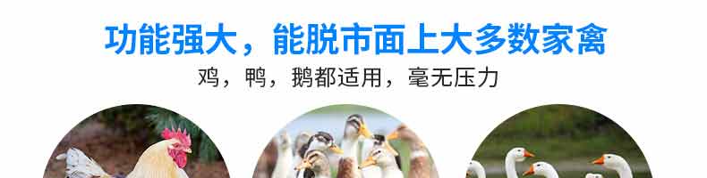 鵝鴨型脫毛機,本機用于雞、鴨、鵝宰殺后的自動脫毛,還可用于脫姜皮、脫馬鈴薯皮、脫魚鱗等農(nóng)產(chǎn)品。本機操作簡單,省力、省時間、工作效率相當(dāng)于十多個人的手工勞動。