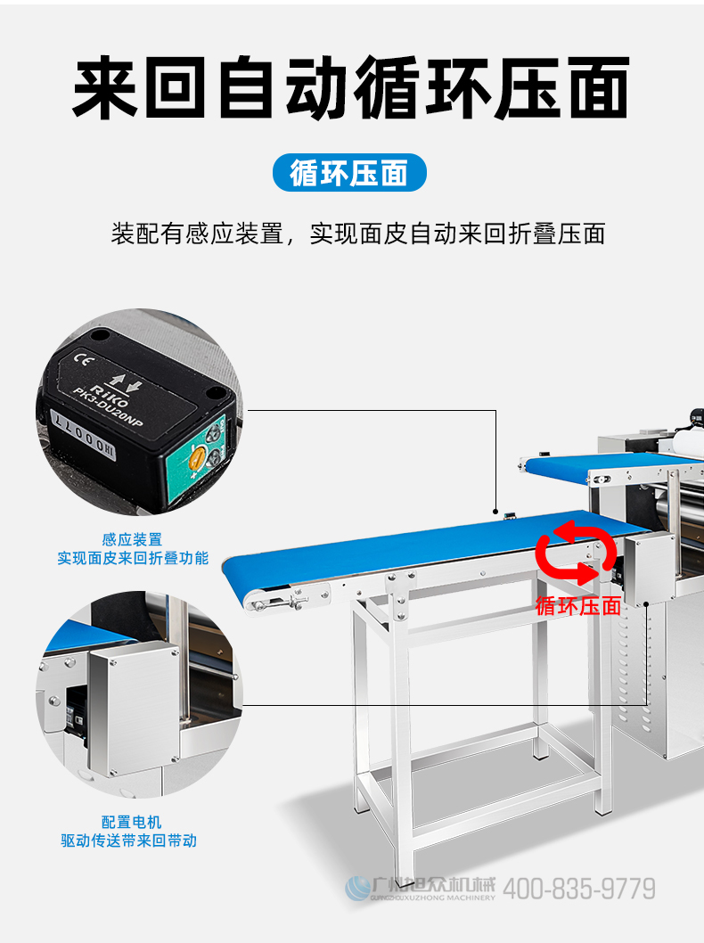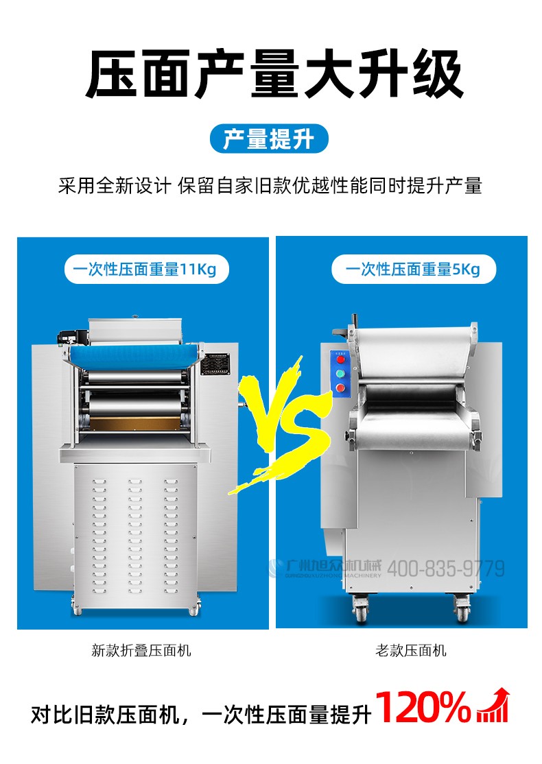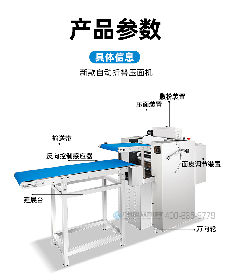 名稱XZ-ZDYMJ370型自動折疊壓面機 電源380V 功率3.5KW 產(chǎn)量一次性壓面重量11kg 尺寸2460X寬790X高1080(mm) 重量機器重量303kg(主機)+36kg(輸送架) 規(guī)格壓面厚度15~19mm 其他皮帶寬度390mm
