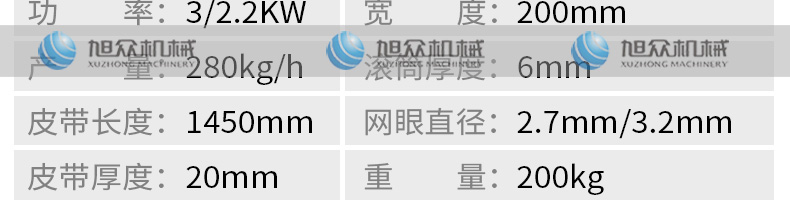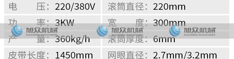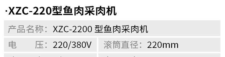 名稱XZC-160型魚肉采肉機(jī) 電源220/380V 功率2.2KW 產(chǎn)量聯(lián)系銷售員 尺寸830X680X870mm 重量140kg 規(guī)格聯(lián)系銷售員 其他